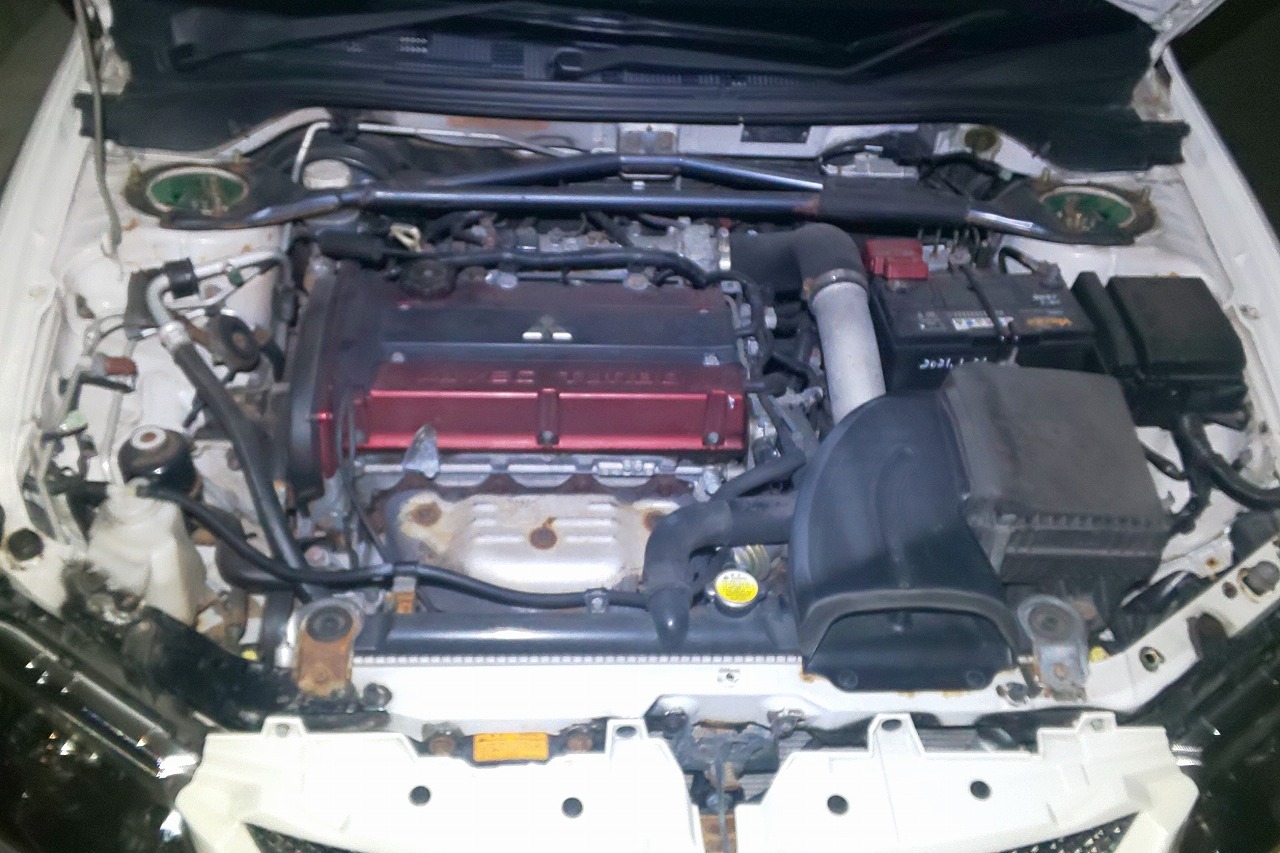 希少なランサーワゴン(CT9W)のGTエボリューションMRです。エンジンルームなどにサビがありましたが、外装、内装の程度が良くエンジンの調子も良い車です。査定時にはテイン車高調、サードキャタライザー、バリスウイング、社外ステアリング、TE37ホイールなどが装着してありましたが、TE37ホイール、社外ステアリングをノーマルに戻し買取しました。今回のように外したいパーツなどがあれば査定時にご相談頂ければ、外した場合の査定額をご提示致します。