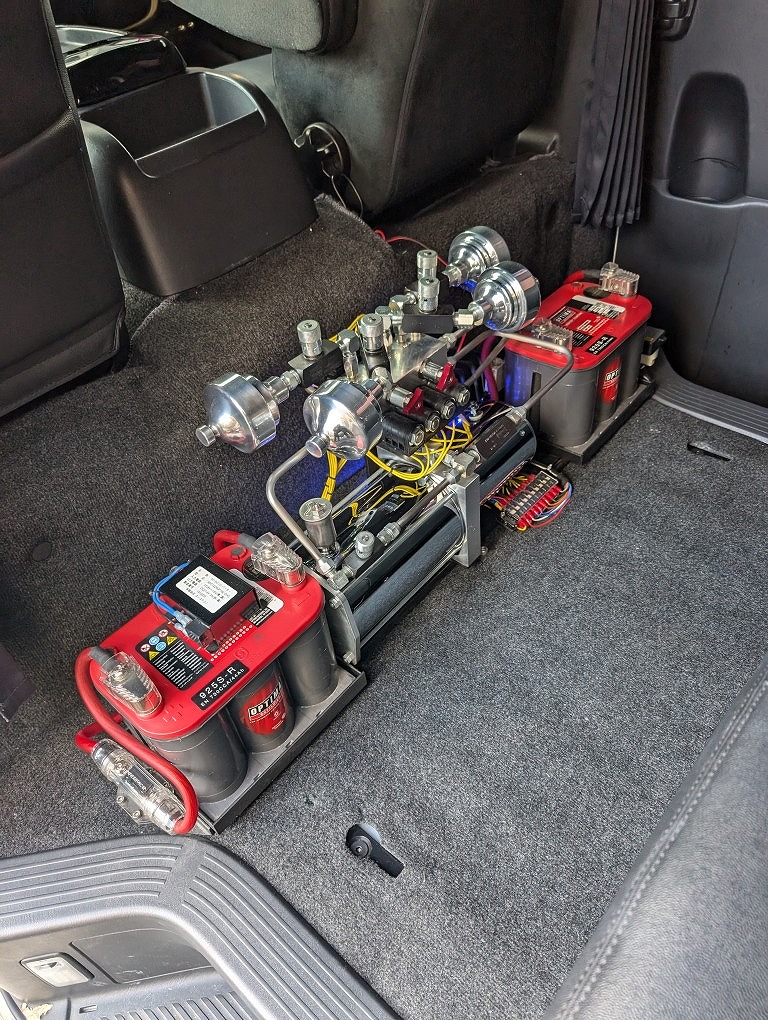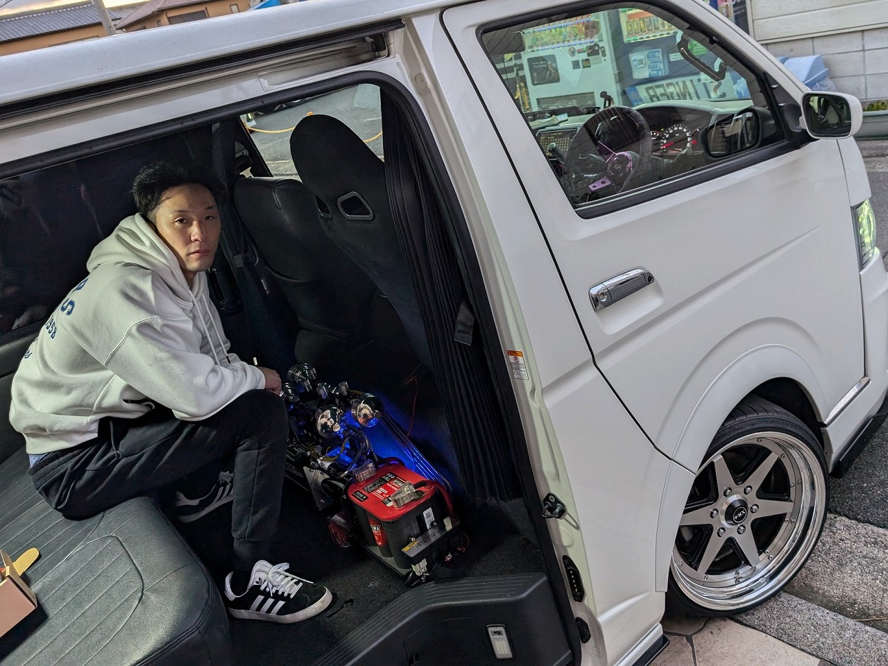 2列目シートの足元にハイドロ関係のパーツが装着されています。