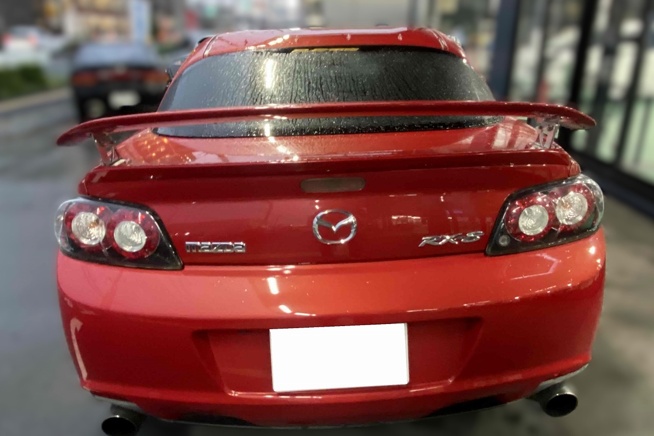 H21年式 RX-8(SE3P) ベース 5速マニュアル 走行10.6万㎞後期、ベースグレードの5速マニュアル車をベースにした改造車です。エンジン関係はナイトスポーツエアクリ、RE雨宮エキマニ&マフラーを装着しナイトスポーツのCPUで制御してあります。足回りはブリッツの車高調が組んであり、外装はマツダスピードのウイングが組んであります。後期の5速マニュアル車はあまり流通されていないため、車の価値を見極めるのも難しい車になりますが、CPSでは車価値にアフターパーツの価値をしっかりプラスし買取しています。