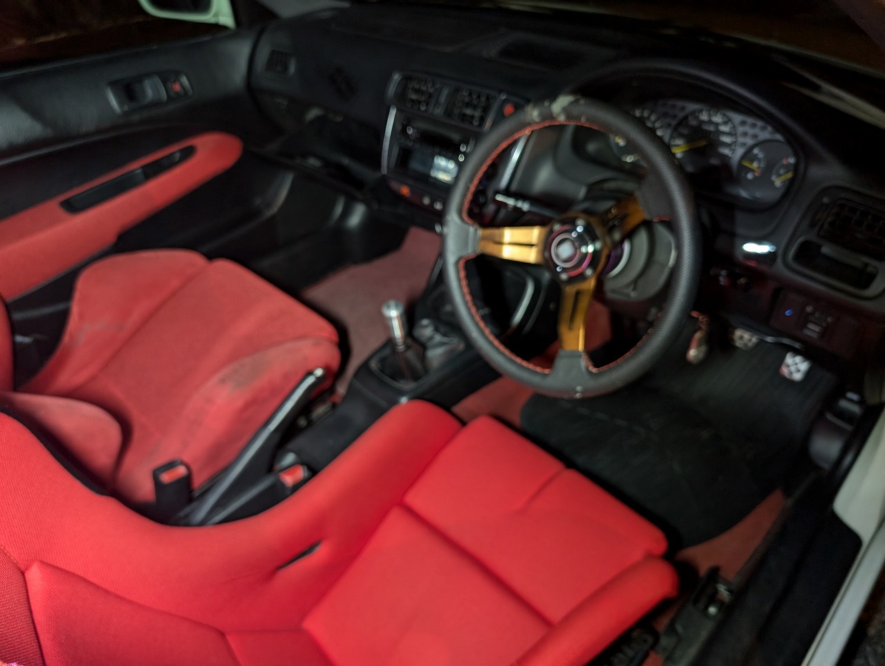 内装類は状態も良く社外のフルバケ、ステアリングに交換してあります。改造車買取専門CPSではシビック、インテグラ、S2000などの改造車も多く査定、買取しています。イベント仕様、サーキット仕様、街乗り仕様など様々な仕様を高価買取‼北海道から沖縄県まで全国無料で出張査定を行っておりますので、チューニングカー、ドレスアップカーの改造車の売却をご検討されている方がいましたら、お気軽にお問合せ下さい♪