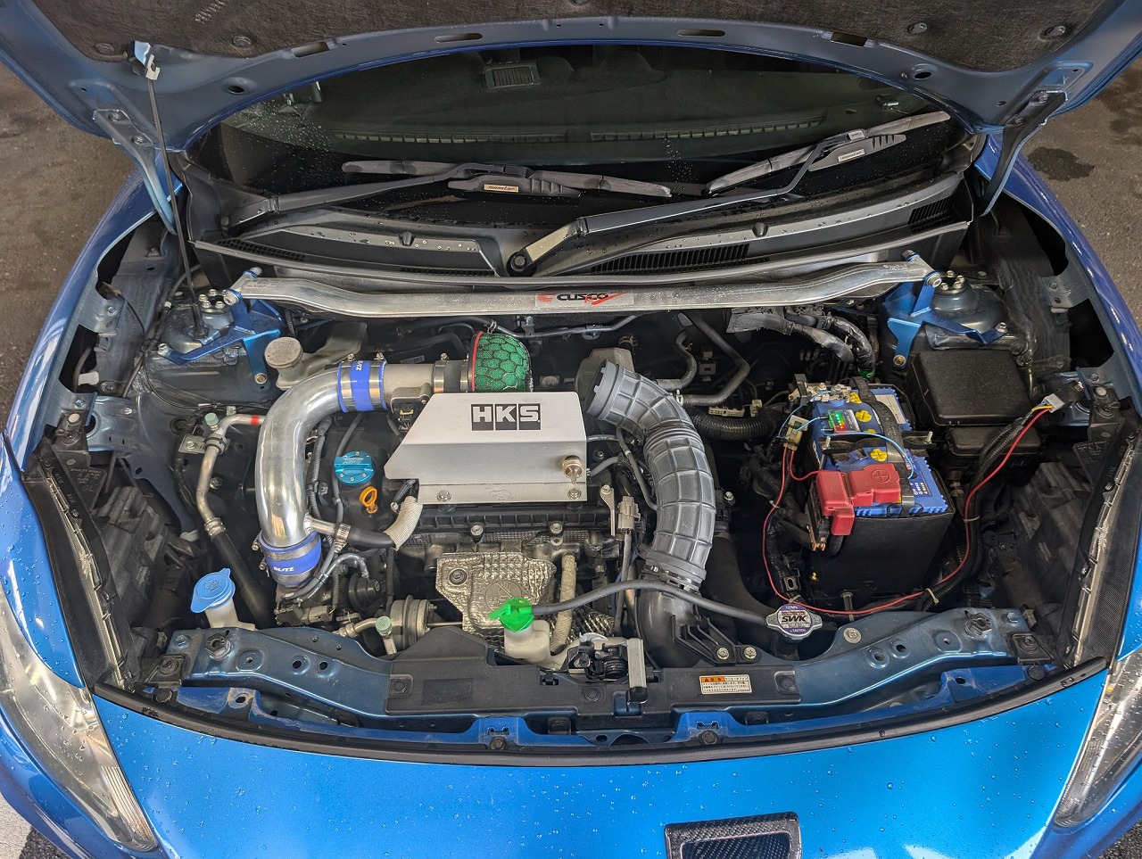 HKSのエアクリーナー&マフラー、ブリッツのサクションパイプに交換しHKSのフラッシュエディターでECUデータを変更してあります。
