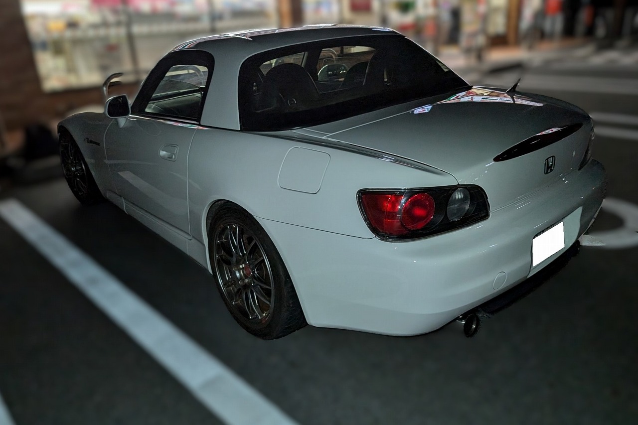 H14年式 S2000(AP1) 6速マニュアル 走行距離不明H14年式S2000(AP1)のライトチューン車です。クラックス車高調、エンケイGTC01ホイールを組み足回りを強化してあり、純正ハードトップ、ブリッドフルバケ、ナルディステアリングが装着されています。走行距離が不明でリヤに修復歴がありますが、機関の状態が良いライトチューン車のため高価買取できました。