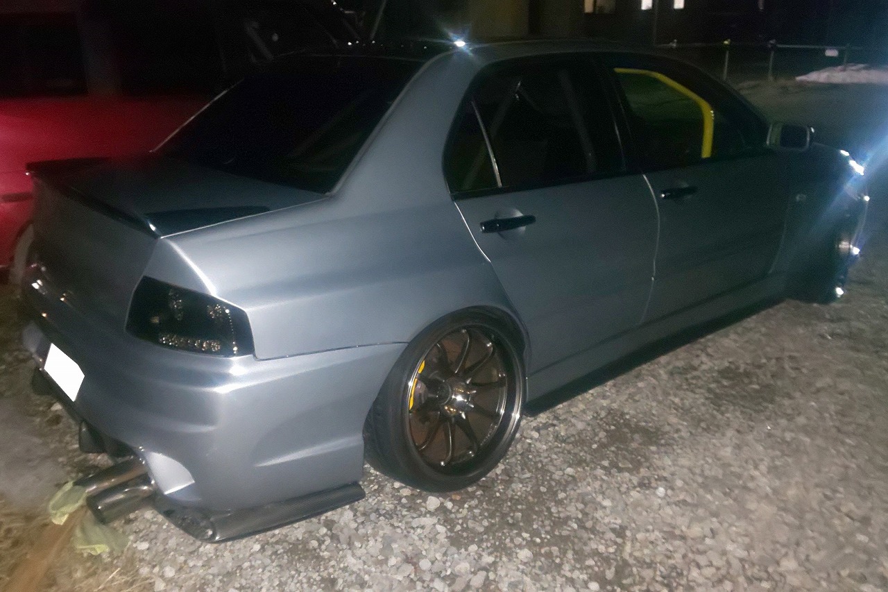 H15年式 ランサー(CT9A) GSRエボリューション8 6速マニュアル 走行11.9万㎞走行11.9万㎞のランサーエボリューション8の改造車です。エンジン関係はHKSエアクリーナー、ワンオフマフラーを装着しラリーアートのCPUで制御されています。D2のキャリパー、スキッドレーシングリヤアーム、オーリンズ車高調などで足回りを強化し、社外エアロパーツを組み合わせドレスアップしてあります。内装もロールバー、デフィ追加メーターなど装着されています。
