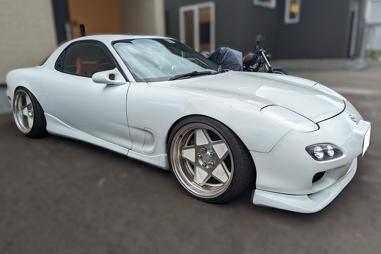 H12年式 RX-7(FD3S) タイプRS 5速マニュアル 走行12.9万㎞H12年式、6型のRX-7(FD3S)のタイプRSの改造車です。走行12.9万㎞ですがエンジンはオーバーホールしてあります。定番のVマウント化してあり、吸排気を社外品に交換しパワーFCで制御されています。足回りはバディークラブ車高調、スーパーナウの偏心ピロ&タイロッドなどが組んであり、ホイールはワークシーカーSXの18インチを履いています。内装はデフィの追加メーター、スパルコステアリング、レカロバケットシートが装着されています。北海道や沖縄県の改造車は錆などによって買取額が変わるため、実車を確認しないと正確な金額をご提示するのが難しいです。CPSでは全国無料で出張査定を行っておりますので、お気軽にお問合せ下さい。
