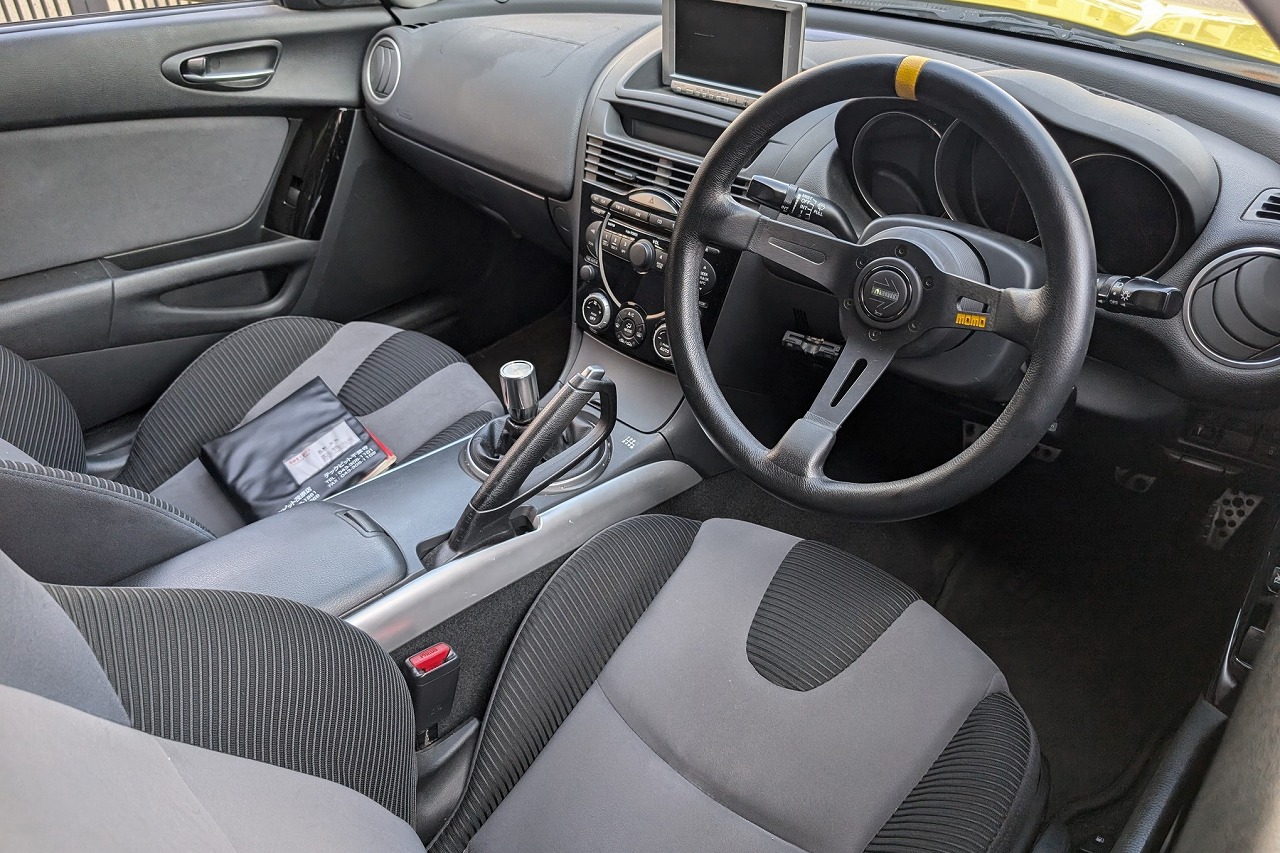 内装はステアリングがMOMO製に交換してあります。オーディオレスでエアコンパネルに不具合がありました。改造車買取専門CPSではロータリーエンジン搭載の改造車を積極的に査定、買取しています。イベント仕様、サーキット仕様、街乗り仕様など様々な仕様を高価買取‼北海道から沖縄県まで全国無料で出張査定を行っておりますので、チューニングカー、ドレスアップカーの改造車の売却をご検討されている方がいましたら、お気軽にお問合せ下さい♪