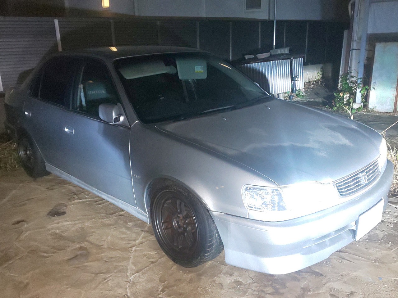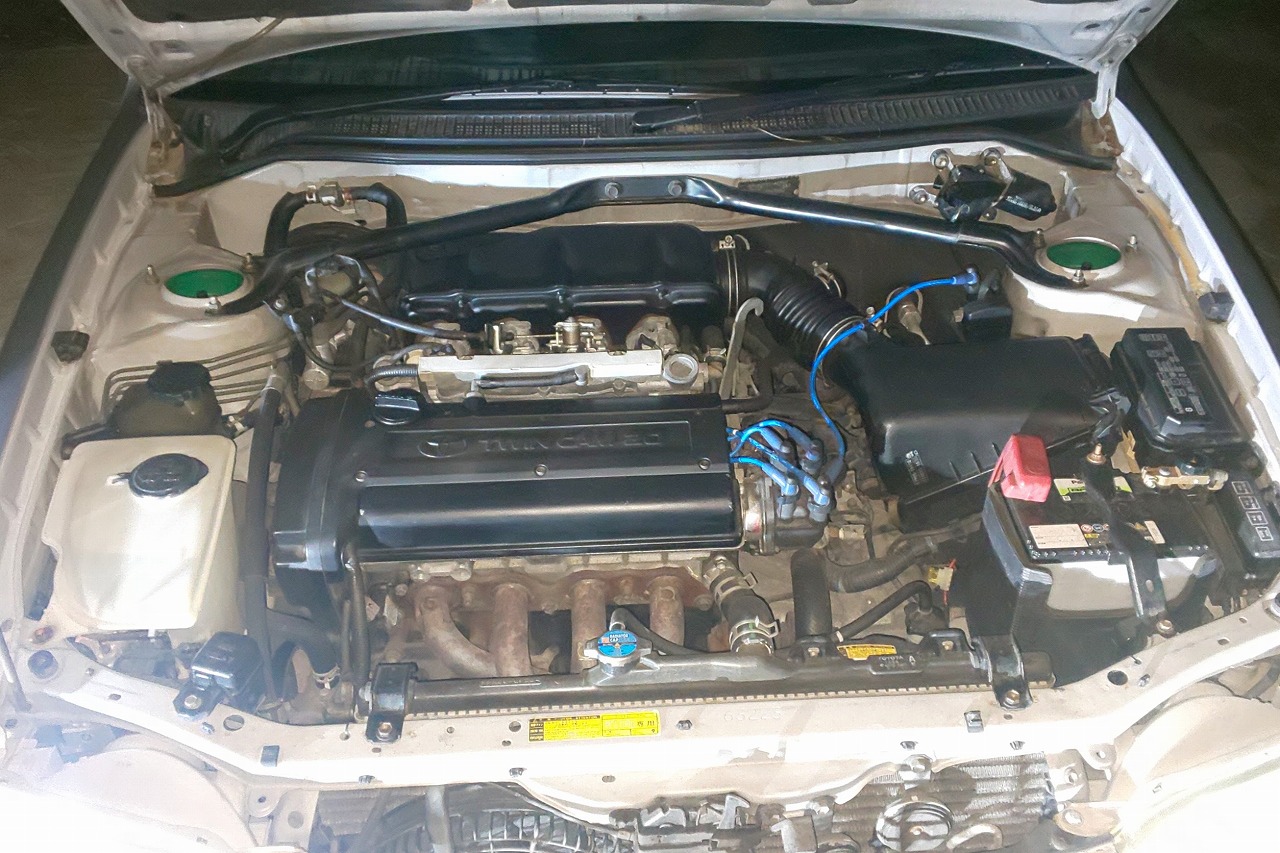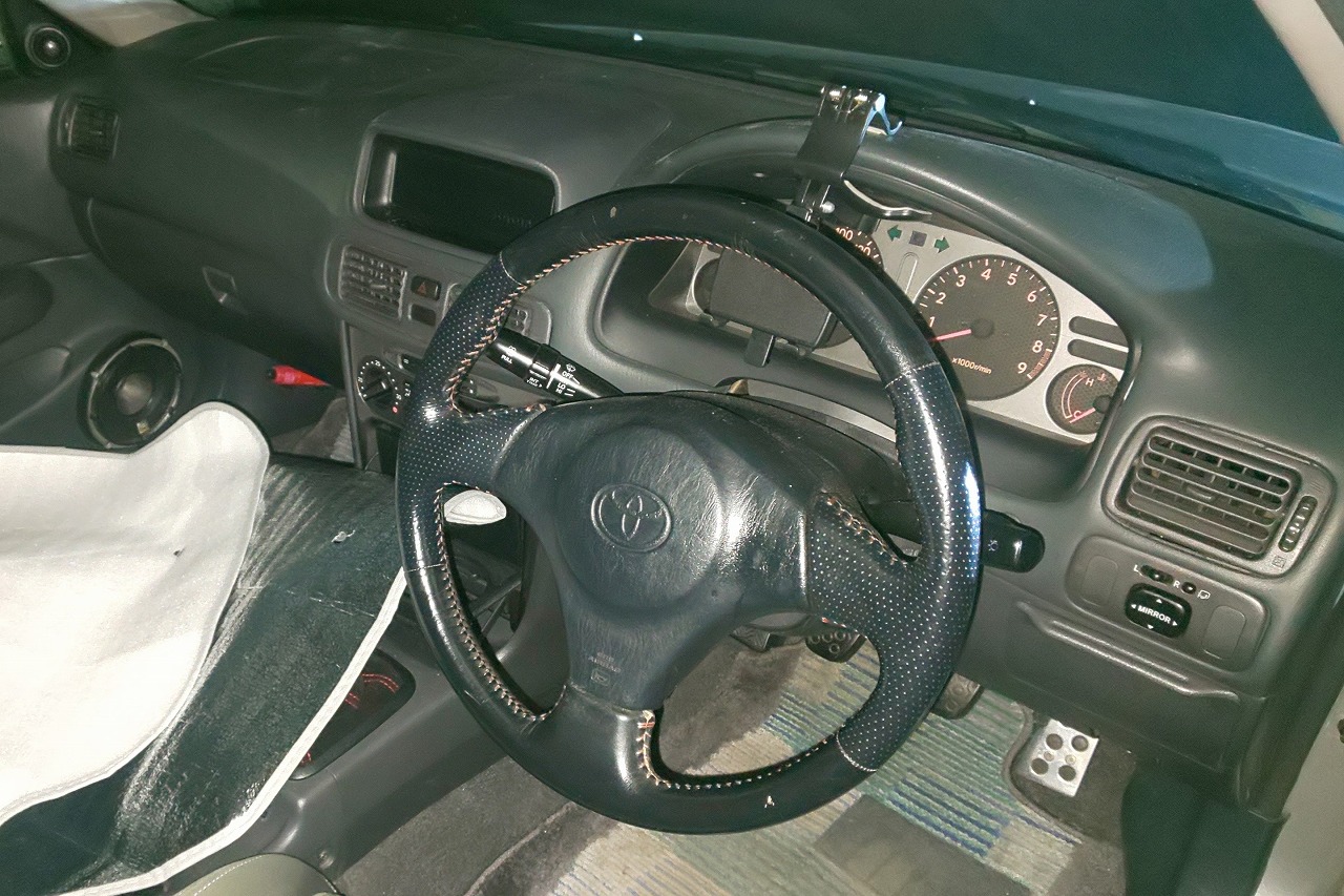 H10年式 カローラ(AE111) GT 6速マニュアル 走行18.3万㎞カローラGTは5バルブエンジンを搭載した4ドアセダンです。査定したカローラは6速マニュアルでマフラー、テイン車高調、エンケイホイールなどを組んだライトチューン車です。外装に色あせがありましたが、内装の状態の良い車でした。