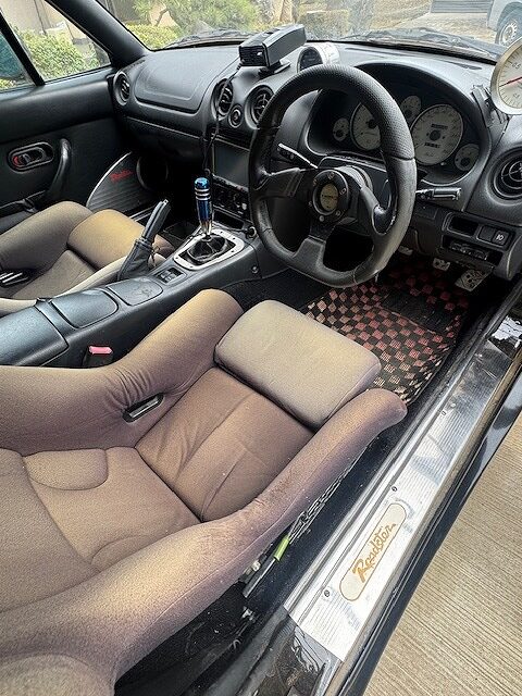 左右シートが社外のバケットシートでステアリングも社外品に交換されています。改造車買取専門CPSでは不動車、事故車のスポーツカーも積極的に査定、買取しています。街乗り仕様、サーキット仕様、イベント仕様など様々な改造車を高価買取‼北海道から沖縄県まで全国無料で出張査定を行っておりますので、チューニングカー、ドレスアップカーのご売却をご検討されている方がいましたら、お気軽にお問合せ下さい♪