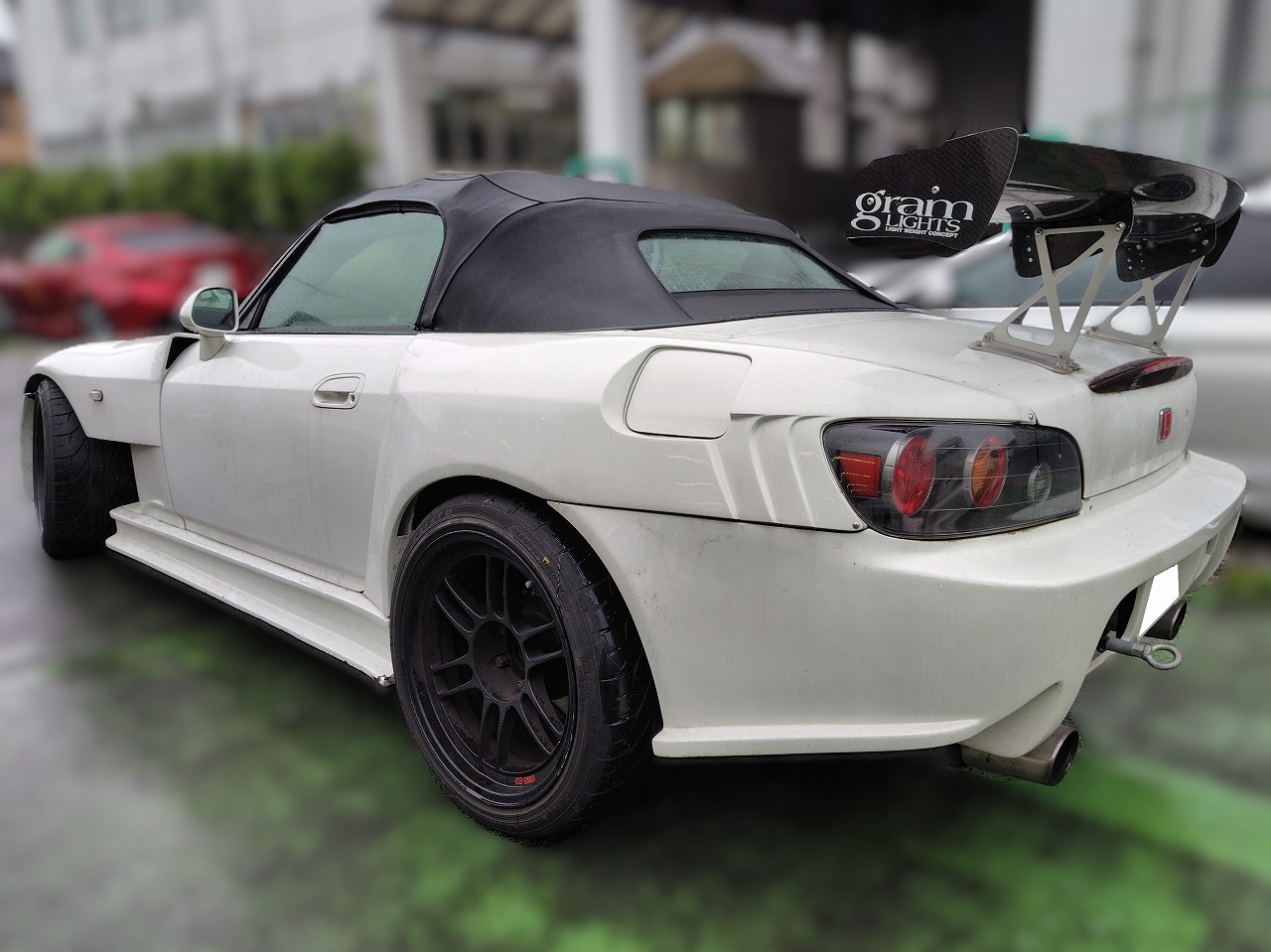 H18年式 S2000(AP2) タイプV 6速マニュアル 走行24.1万㎞H18年式、S2000(AP2)、タイプVをベースにした改造車です。エンジンは10万㎞時に戸田のハイカムを組みオーバーホールしてあり、冷却対策としてアルミラジエター、トラストのオイルクーラーが装着されています。足まわりはテインの車高調、駆動系も社外のLSDが組んであります。外装はインパクトのエアロ、社外のGTウイングが組んであります。査定時はエンケイのホイールを履いていましたがボルクCE28に変えて買取ました。走行28万㎞で修復歴もある車でしたが、チューニング&ドレスアップした価値をプラスし買取しました。