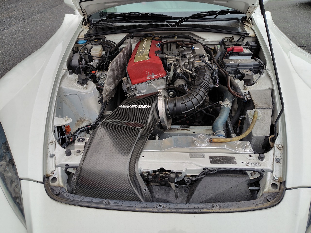 10万㎞時エンジンOH/スプーンハイカム/社外アルミラジエター/ムゲンエアクリーナー/トラストオイルクーラー/ムゲンエキマニ/サードキャタライザー/社外LSD/テイン車高調/社外ロールバー/インパクトエアロ(フロントバンパー/サイドステップ/リヤバンパー/フロントフェンダー)/社外GTウイング/ムゲン追加メーター(水温/油温/油圧)/ムゲンバケットシート/MOMOステアリング