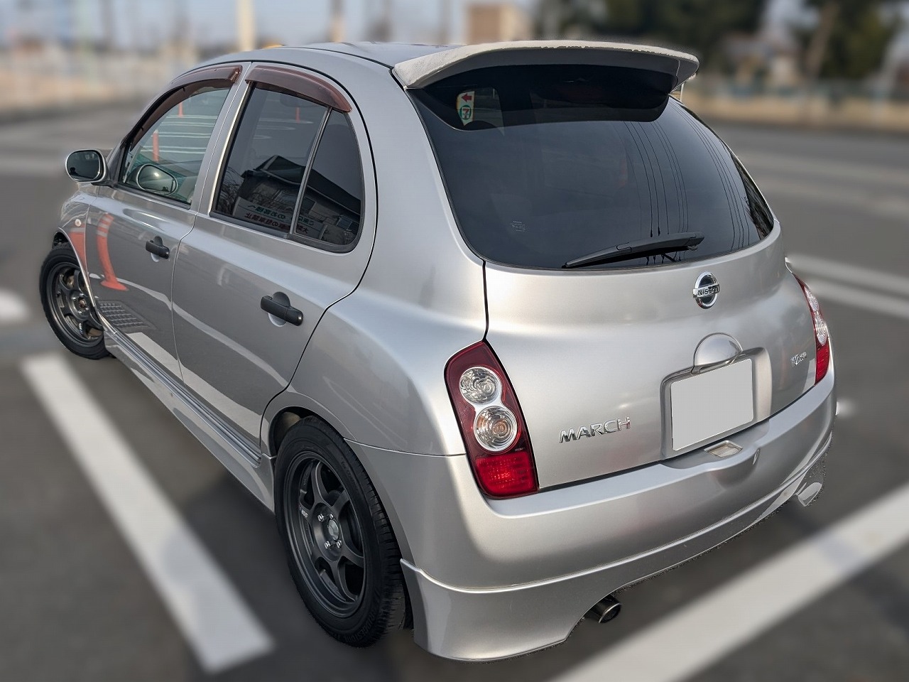 H22年式 マーチ(AK12) 12SR 5速マニュアル 走行13.7万㎞H22年式、1オーナー車のマーチ(AK12)で走行距離は13.7万㎞になります。クスコ車高調、SSRホイール、クスコタワーバーなどの社外パーツが組んであります。外装は色あせなどがありますが、内装を見ると年式、走行距離のわりに程度が良く大切に乗られている車なのがわかりました。改造箇所は少ないですがアフターパーツの価値をプラスでき、他社の下取り価格より良い金額で買取できました。
