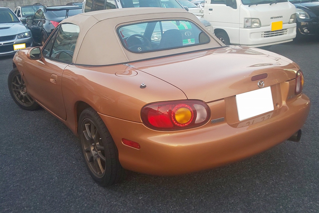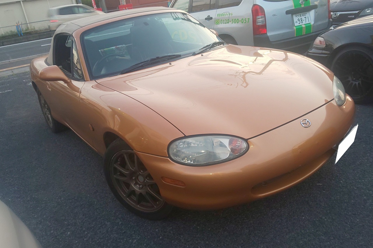 H11年式 ロードスター(NB8C) RS 6速マニュアル 走行13.6万㎞H11年式ロードスター(NB8C)です。ボディ、幌に多少色あせがありますが、年式、走行距離の割に内外装、機関の程度の良い車になります。改造箇所はホイールとマフラーを社外品に交換してあります。少しでもアフターパーツが装着されていればプラス査定し買取しています。