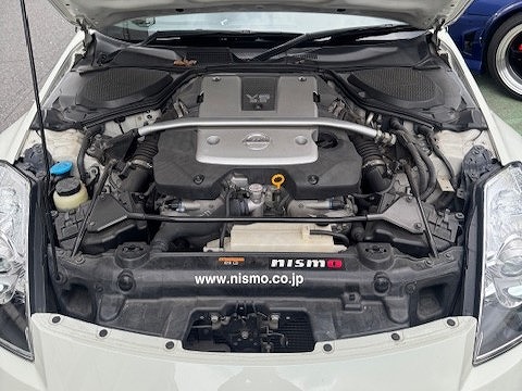 H20年式 フェアレディZ(Z33) バージョンニスモ 6速マニュアル 走行11.3万㎞H20年式、フェアレディZ(Z33)、バージョンニスモ、6速マニュアル車をベースにしたライトチューン車です。改造箇所は、サクラムマフラー、TE37ホイール、レカロフルバケになります。内外装の程度の良く、バージョンニスモに似合ったアフターパーツが装着されたライトチューン車のため、高価買取できました。
