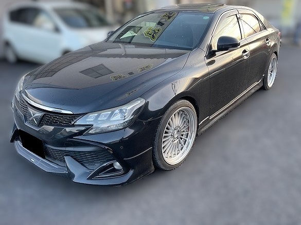 H29年式 マークX(GRX130) 250S オートマ 走行6.1万㎞H29年式、マークX(GRX130)のサンルーフ付き車をベースにしたカスタムカーです。カスタム内容はモデリスタのエアロ、エアフォースのエアサス、ワークランベックのホイールになります。ボディカラーがブラックでサンルーフ付き、革シートと希少なマークXをベースにドレスアップしてあるため、精一杯の金額をご提示し買取しました。