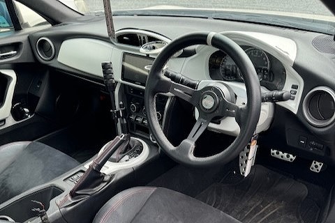 内装のパネル類が塗装してあり、ステアリングが社外品に交換してあります。改造車買取専門CPSではBRZ、86、GR86の改造車も多く査定、買取しています。イベント仕様、サーキット仕様、街乗り仕様など様々な仕様を高価買取‼北海道から沖縄県まで全国無料で出張査定を行っておりますので、チューニングカー、ドレスアップカーの改造車の売却をご検討されている方がいましたら、お気軽にお問合せ下さい♪