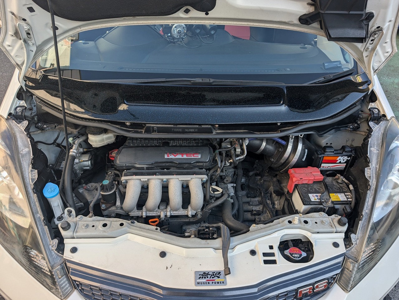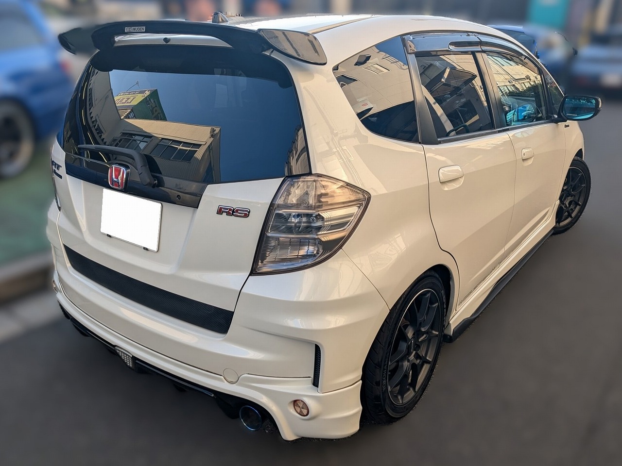 H23年式 フィット(GE8) RS10thアニバーサリー オートマ 走行11.2万㎞H23年式、走行11.2万㎞、フィット(GE8)のオートマ車をベースにしたドレスアップカーになります。グループMのエアクリーナー、柿本のマフラーに交換し吸排気チューンが施してあります。外装は後付けのサンルーフが装着してあり、ムゲン&タケローズのエアロパーツ、ボルクのG025ホイールを履きドレスアップしてあります。内装も社外のシートカバー、J’sレーシングのステアリング、オートゲージの追加メーターなどのアフターパーツが装着されています。オートマ車ですがアフターパーツが色々してあったため、パーツの価値も含め買取しました。