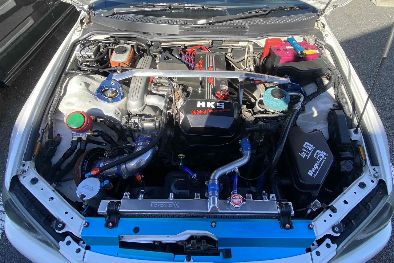 HKSエアクリ/トラストオイルクーラー/コーヨーラジエター/HKSエキマニ/トラストマフラー/エンドレス車高調/クスコスタビ/オリジナルランデュースキャリパー/クスコタワーバー/ボルクG25ホイール/追加メーター/ブリッドフルバケ