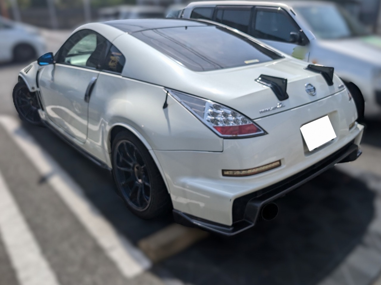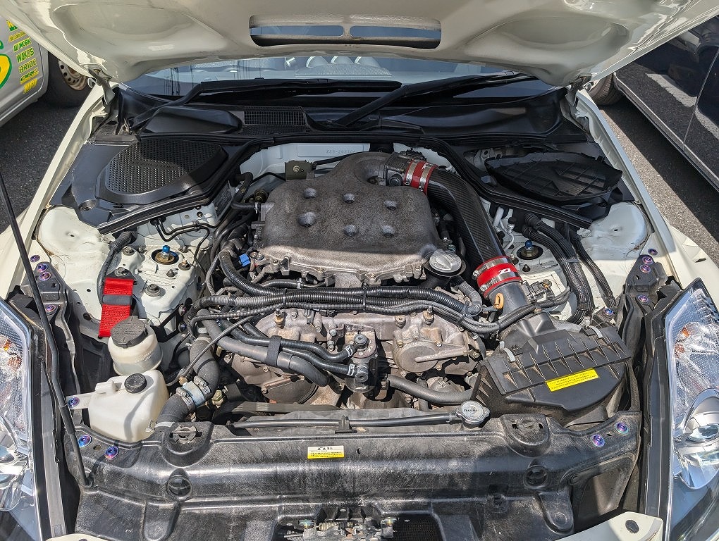 H16年式 フェアレディZ(Z33) バージョンST 6速マニュアル 走行21.9万㎞H16年式、フェアレディZ(Z33)のバージョンSTのマニュアル車で多数チューニング&ドレスアップが施されています。エンジン関係は社外のカーボンサクションパイプ、柿本のマフラーに交換してあり、セントラル20のオイルクーラーも装着さています。足回りもエンドレスの車高調を組み強化してあります。外装は社外のエアロ類が組んであり、ボルクのホイールを履き戦闘的なスタイルに仕上げてあります。内装もレカロのバケットシート、デフィの追加メーター類、MOMOのステアリング、IRFのショートシフターが装着されていて、スポーティな仕上がりとなっています。走行距離が20万㎞を超えていますが、しっかりチューニング&ドレスアップされている機関良好な改造車のため交換買取できました。