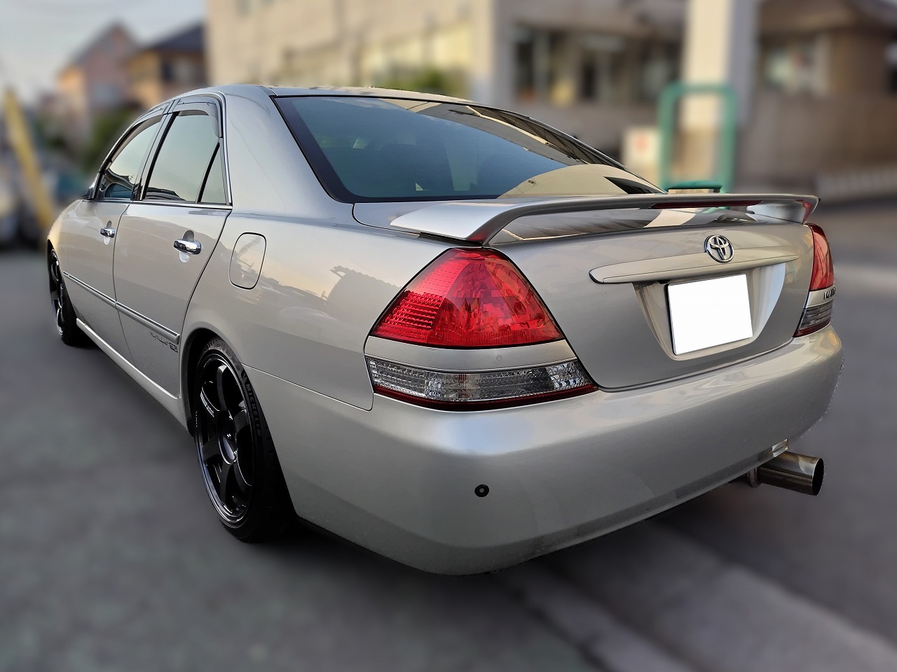 H16年式 マーク2(JZX110) 2.5iR-V 5速マニュアル 走行5.6万㎞H16年式、走行5.6万㎞、純正マニュアルのマーク2をベースにした改造車です。エンジンはエアクリ、インタークーラー、キャタライザー、マフラーを社外品に交換してあり、プレミアムジャパンのスロットルコンバートキットも装着してあります。足回りはテインの車高調、駆動系はクスコのLSDが組んであります。内装はレカロのセミバケットシート、MAXORIDO、ナルディのコラボステアリングに交換してあります。外装に派手さはありませんが、走行距離が少なく内外装の程度の良い車でスポーツ走行ができるようしっかりチューニングしてあるため高価買取できました。