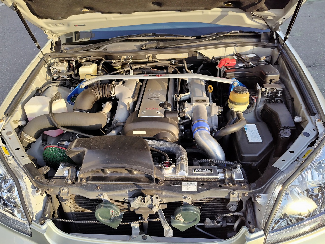 エンジン関係はHKSのエアクリーナー、トラストのインタークーラー、ウェッズのキャタライザー、ラスティのマフラーなどで吸排気チューンしてあります。スロットルもプレミアムジャパンのスロットルコンバートキットが装着されています。