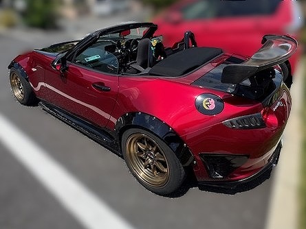 H31年式 ロードスター(ND5RC) Sスペシャルパッケージ 6速マニュアル 走行10.1万㎞H31年式、ロードスター(ND5RC)の6速マニュアル車をベースしたカスタムカーになります。エンジンはイーカスタムのエキマニ、フジツボのマフラーに交換し、オーデュラのECUで制御されています。足回りはテインの車高調が組んであります。外装はオーデュラ、ガレージベリー、ケンスタイルなどのエアロを組み合わせて、HLKのホイールを履き仕上げてあり、内装にはブリッドのフルバケが組んであります。走行距離が10万㎞を超えていますが、チューニング&ドレスアップが多数施されているためカスタムした価値を精一杯プラスし買取しました。