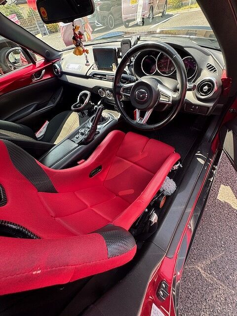 内装は運転席がブリッドのフルバケに交換してあります。改造車買取専門CPSではNA~NDまでロードスターのカスタムカーを積極的に査定、買取しています。街乗り仕様、サーキット仕様、イベント仕様など様々な改造車を高価買取‼北海道から沖縄県まで全国無料で出張査定を行っておりますので、チューニングカー、ドレスアップカーのご売却をご検討されている方がいましたら、お気軽にお問合せ下さい♪
