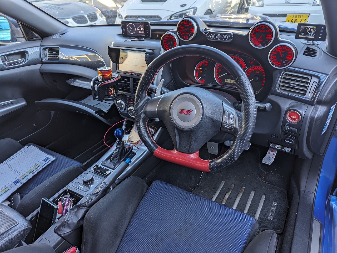 メーターパネルにデフィの追加メーターが装着されていて、ステアリングはダムド製に交換してあります。改造車買取専門CPSではインプレッサ、WRX、レヴォーグなどのスバル車の改造車も積極的に査定、買取しています。サーキット仕様、街乗り仕様、イベント仕様など様々な改造車を高価買取‼北海道から沖縄県まで全国無料で出張査定を行っておりますので、チューニングカー、ドレスアップカーのご売却をご検討されている方がいましたら、お気軽にお問合せ下さい♪