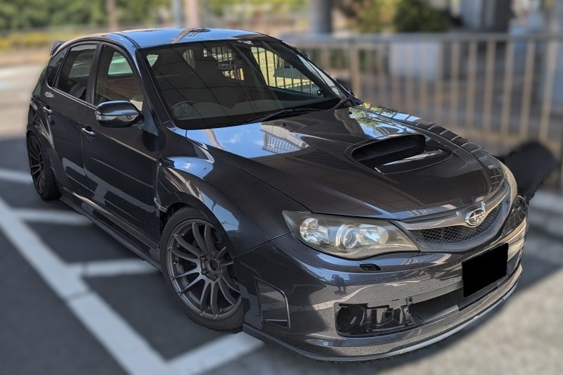 H21年式 インプレッサ(GRF) WRXSTiAライン オートマ 走行17.3万㎞インプレッサ(GRF)をベースにした改造車です。外装はフロントフェンダーが自作でカットしてあり、リヤバンパーも自作カットしてあり色が違いなどありますが、吸排気を社外品に交換しHKSフラッシュエディターでECUを書き換えてあり、車高調、グラムライツホイールなどで足回りも強化されています。外装は良い状態とは言いにくいですが、しっかりチューニングされていたので、高価買取できました。