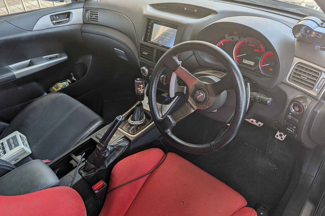 内装はレカロセミバケ、社外ステアリングに交換されています。改造車買取専門CPSではインプレッサ、WRX、レヴォーグなどの改造車も多く査定、買取しています。イベント仕様、サーキット仕様、街乗り仕様など様々な仕様を高価買取‼北海道から沖縄県まで全国無料で出張査定を行っておりますので、チューニングカー、ドレスアップカーの改造車の売却をご検討されている方がいましたら、お気軽にお問合せ下さい♪
