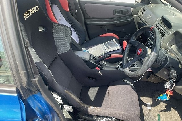 H10年式 インプレッサ(GC8) WRX STi タイプRA VER.4 6速マニュアル 走行16.6万㎞走行16.6万㎞のインプレッサ(GC8)WRXSTiタイプRAVER.4の改造車です。エンジン関係はゼロスポーツのサクションパイプ、柿本のマフラーに交換してあります。足回りはアペックスの車高調、スプリントハートのホイールに交換してあり、駆動系はGDBのミッションを使い6速に変更してあります。内装もレカロのフルバケ、社外ステアリングが装着されています。16.6万㎞走っていますが、内外装、機関の状態も良い改造車のため精一杯頑張って買取しました。