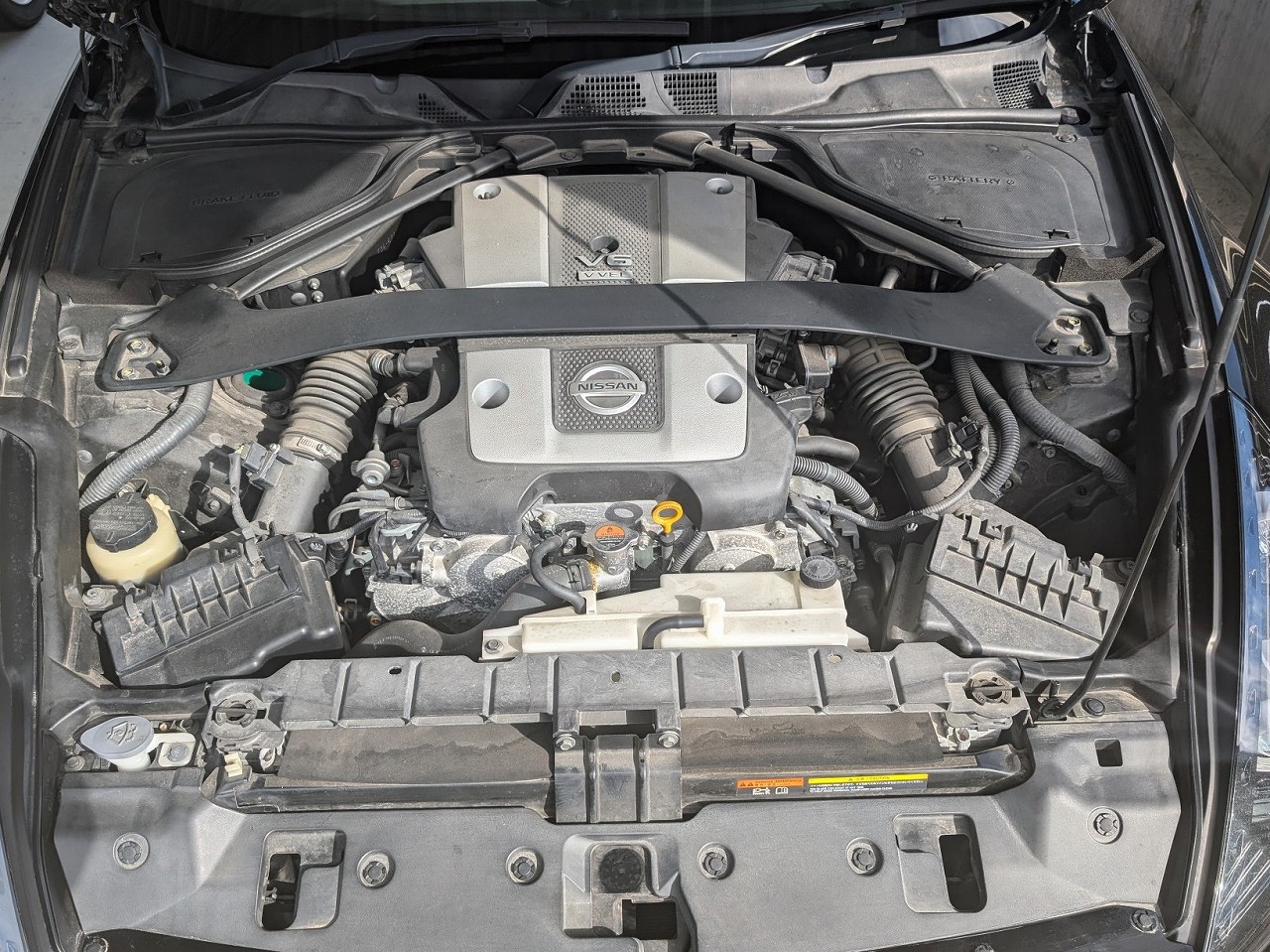 H21年式 フェアレディZ(Z34) バージョンS 6速マニュアル 走行7.0万㎞H21年式、フェアレディZ、バージョンSのマニュアル車をベースにしたライトチューン車です。エンジン関係はフジムラオートのマフラーに交換してあり、足回りはテインの車高調が組んであります。外装はフジムラオートやバリスのエアロパーツを組み、エンケイのRS05RRを履いています。スポーティなエクステリアで快適性もある改造車でしたので、精一杯頑張り買取しました。