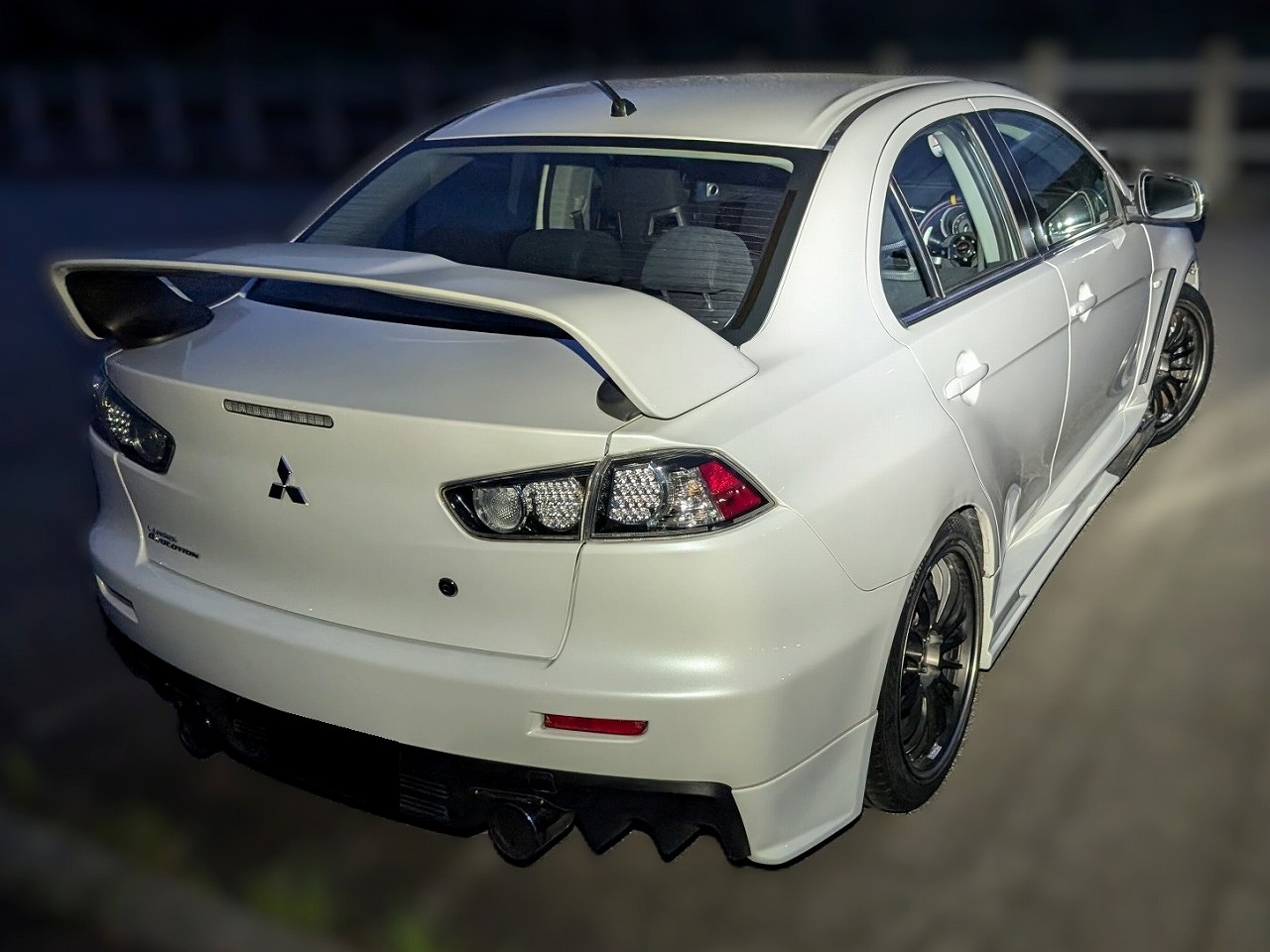 H21年式 ランサー(CZ4A) GSRエボリューション10 オートマ 走行11.6万㎞H21年式、ランサー(CZ4A)のオートマ車をベースにしたライトチューン車です。エンジンは東名のチタンインタークーラーパイプ、HKSのマフラーに交換してあり、足回りにはテインの車高調が組んであります。外装はMスポーツのフロントバンパー、バリスのサイドステップ、社外のテールランプ、レイズのホイールなどでドレスアップしてあります。内装はメーターフード、ドア内張、ピラーなどの一部をスエードで張替てあり、社外ステアリングに交換してあります。オートマ車ですが街乗りを快適に楽しめそうなチューニング&ドレスアップが施されている改造車なので精一杯頑張り買取しました。