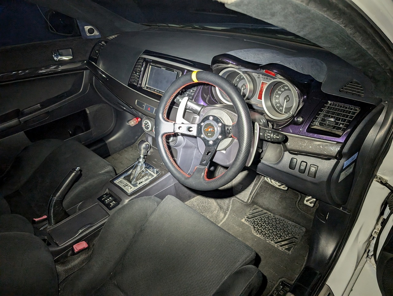 メーターフード、ピラー、ドア内張りなど一部スエードで張替てあり、社外のステアリングが装着されています。改造車買取専門CPSではランサー、インプレッサ、WRXなど4WDスポーツカーも積極的に査定、買取しています。街乗り仕様、サーキット仕様、イベント仕様など様々な改造車を高価買取‼北海道から沖縄県まで全国無料で出張査定を行っておりますので、チューニングカー、ドレスアップカーのご売却をご検討されている方がいましたら、お気軽にお問合せ下さい♪