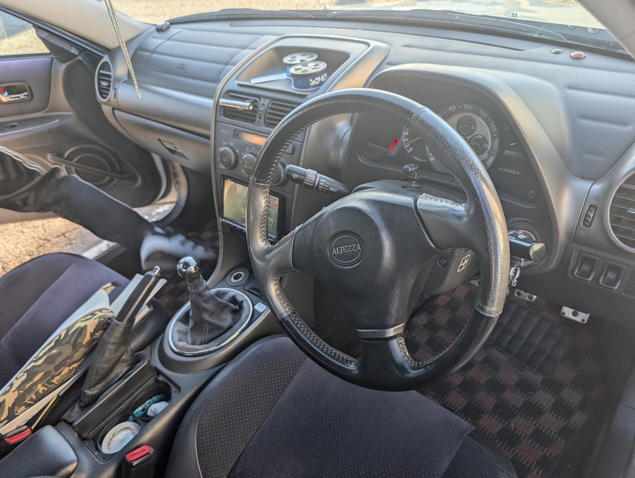 H11年式 アルテッツァ(SXE10) RS200Lエディション 6速マニュアル 走行15.1万㎞H11年式、走行15.1万㎞のアルテッツァ(SXE10)のマニュアル車の改造車です。エンジンはエアクリーナー、マフラーも含めノーマルで、ラルグスの車高調、クスコのLSDが組んであります。内装は比較的に程度が良いのですが、外装は塗装のクリア剥がれが全体にありました。ぱっと見ただけではノーマルですが、車高調、LSDの価値をプラスし買取しました。