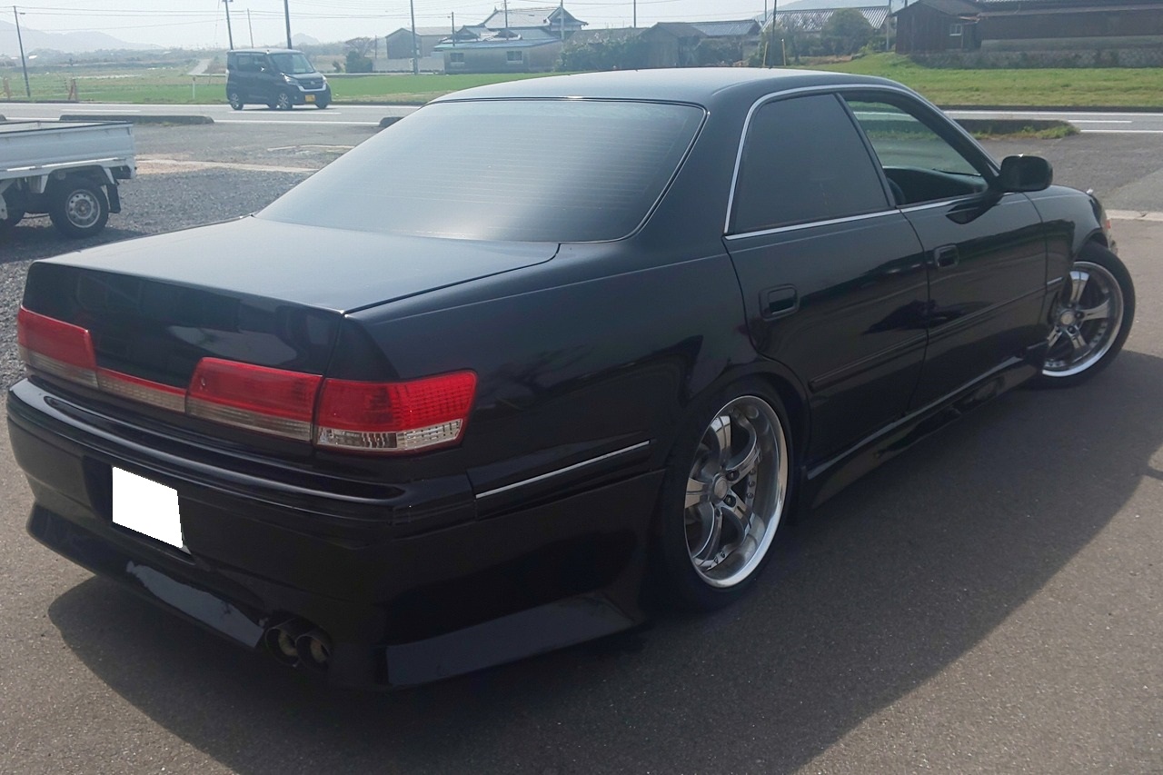 H8年式 マーク2(JZX100) ツアラーV 5速マニュアル 走行21万㎞H8年式の純正5速マニュアルのマーク2(JZX100)をベースにした改造車です。エンジン関係はHKSエアクリ、社外インタークーラー、社外マフラーに交換してあり、足回りはKTSの車高調で強化してあります。外装はブラックにオールペンし社外エアロ、ワークホイールを組みドレスアップしたります。エンジン回りから異音がしていて、他社からエンジンブローの可能性があると言われたようですが、当社スタッフが確認した結果エンジン本体に問題ありませんでした。当社はしっかり車の知識を持ったスタッフが査定していますので、安心して査定のご依頼を頂ければと思います。