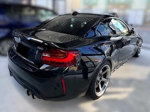 H28年式、走行8.6万㎞のBMWM2(1H30)のライトチューン車になります。エンジン関係はBMCのエアクリーナー、FTPのチャージパイプに交換してあり、足回りはKWのVer.3車高調、アドバンGTビヨンドホイールに交換されています。岩手県で乗られていた車ですが下回りに気になるサビもなく、内外装、機関良好な改造車でした。