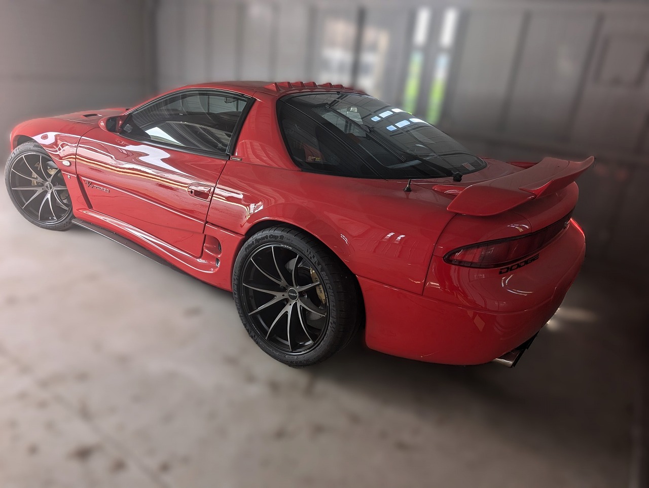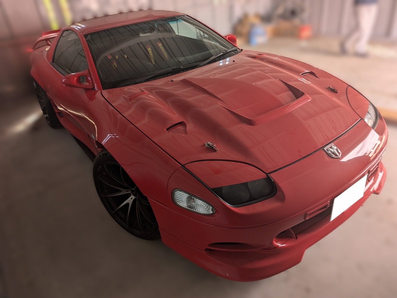 H8年式 GTO(Z15A) ツインターボMR 6速マニュアル 走行距離不明H8年式、GTO(Z15A)の6速マニュアル車をベースにしたカスタムカーです。エンジンはエアクリ、インタークーラー、マフラーなどを社外品に交換し吸排気チューンが施されています。足回りはアラゴスタ車高調、ブレーキはトラストのキャリパーが組んであり、社外のLSDも装着されています。外装は同色で再塗装し社外のエアロ、レイズの20インチホイールを履きドレスアップされています。内装もレカロnバケットシート、MOMOのステアリング、アペックスの追加メーターなど装着されています。走行距離は不明ですが、内外装、機関の状態がよくしっかりチューニング&ドレスアップされた改造車のため、高価買取できました。