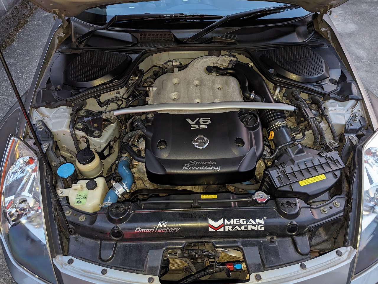 H17年式 フェアレディZ(Z33) ベース オートマ 走行10.5万㎞H17年式、オートマのフェアレディZをベースにした改造車です。エンジン関係は社外マフラーに交換しアミューズのCPUでマネージメントされていて、テイン車高調、クスコLSDなども装着されています。外装は目立つキズなどなく社外リップ、CSTのホイールが組んであります。内装も社外ステアリング、デフィ追加メーターが装着されています。バランス良く仕上げたライトチューン車です。