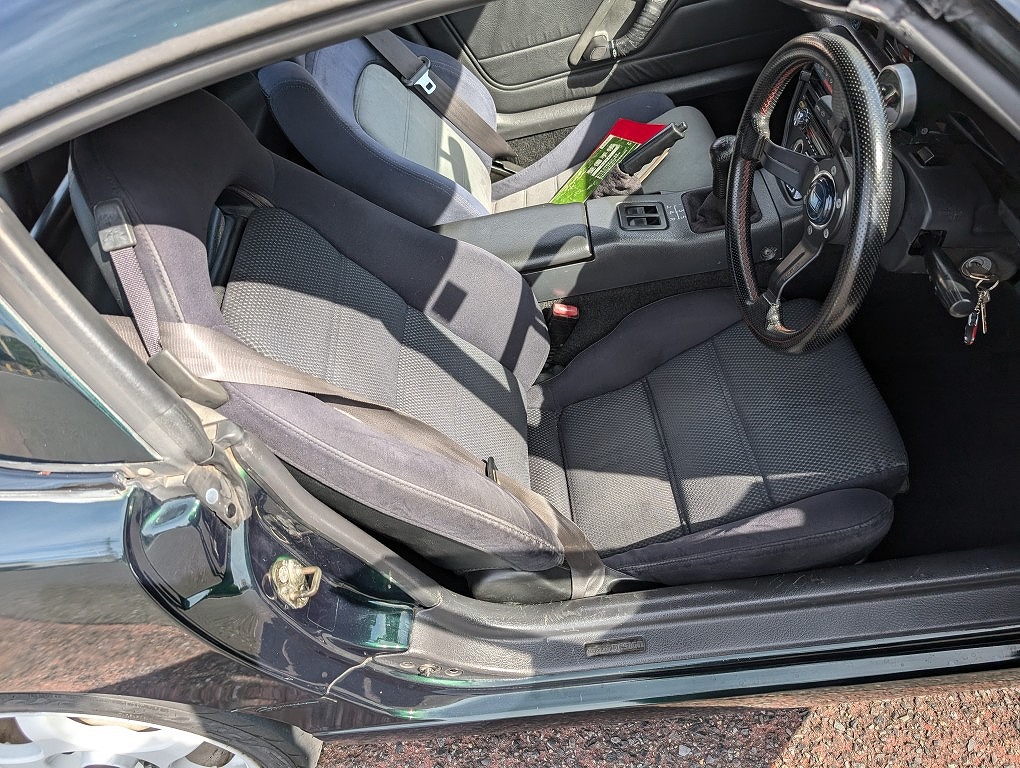 シートは左右RX-7(FD3S)純正に交換してあり、ナルディステアリング、デフィ追加メーターなども装着されています。