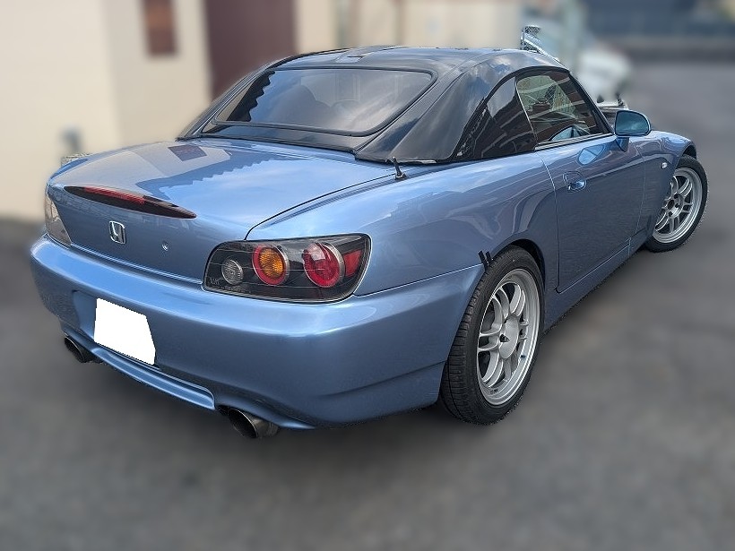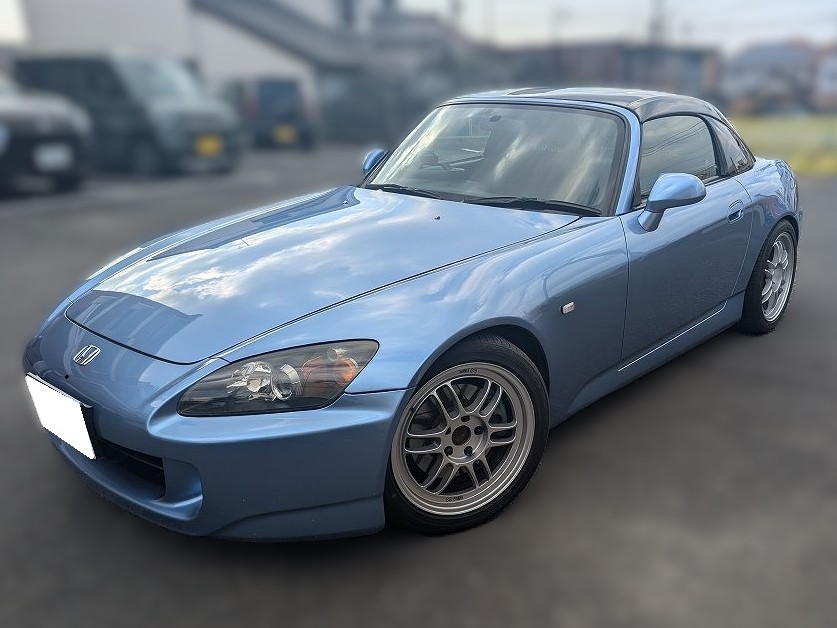 H15年式 S2000(AP1) ベース 6速マニュアル 走行19.1万㎞H15年式のS2000(AP1)のライトチューン車です。改造内容はムゲンのマフラー、テインの車高調、エンケイのRPF1ホイール、ムゲンのハードトップなどになります。走行19万㎞を超えていて修復歴もありますが、ムゲンのマフラー&ハードトップ、ブリッドのバケットシートなど人気のアフターパーツが装着されていて、パーツ単品の状態も良好だったためアフターパーツの価値をしっかりプラスし買取しました。