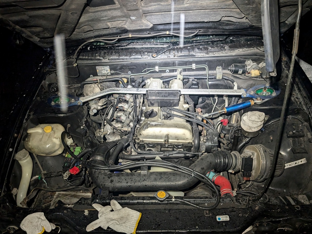 社外のエアクリーナー、エキマニ、マフラーに交換してあります。もちろん触媒レスです。タワーバーやエンジントルクダンパーも装着されています。