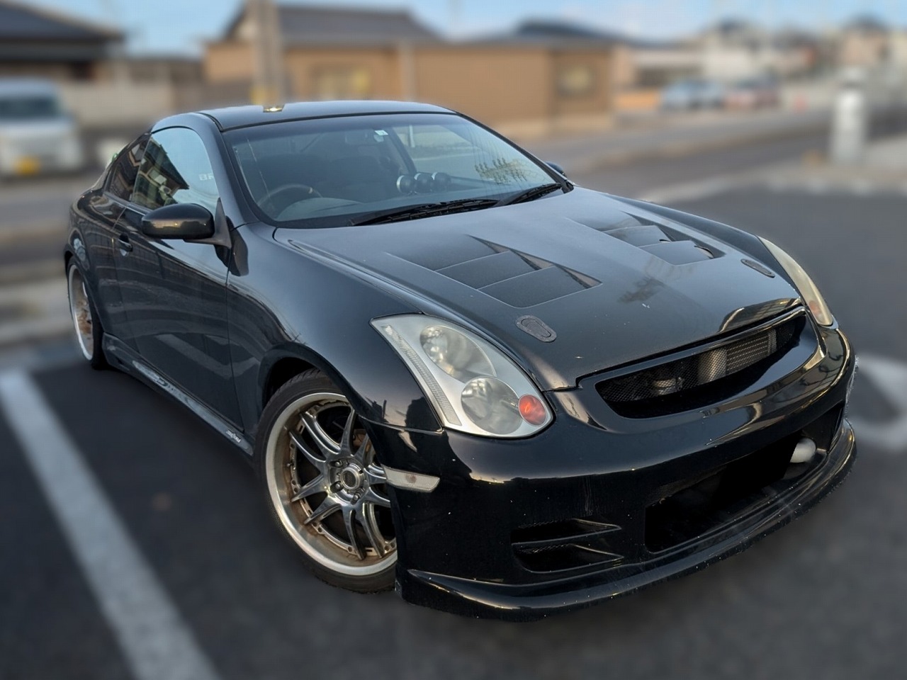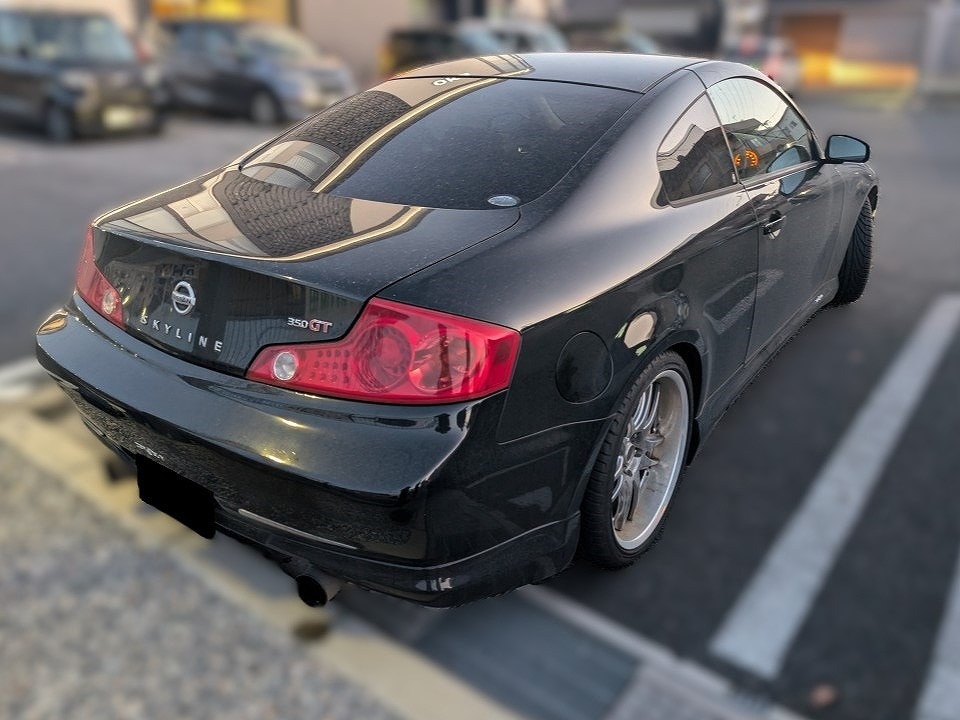H17年式 スカイライン(CPV35) 350GT 6速マニュアル 走行14.9万㎞H17年式のスカイライン(CPV35)の1オーナー車です。エンジンはHKSのスーパーチャージャーキットを組んでパワーアップしてあります。パワーアップに合わせテインの車高調がエンドレスのキャリパーも組んであります。外装はトップシークレットのフロントバンパー&ボンネット、社外のサイドステップ&リヤバンパーを組みボルクのホイールを履きドレスアップしてあります。内装はデフィの追加メーターやMOMOのステアリングが組んであります。ダッシュボードに割れ、スピードメーター不良などの不具合がありましが、しっかりチューニング&ドレスアップしてあるため高価買取できました。