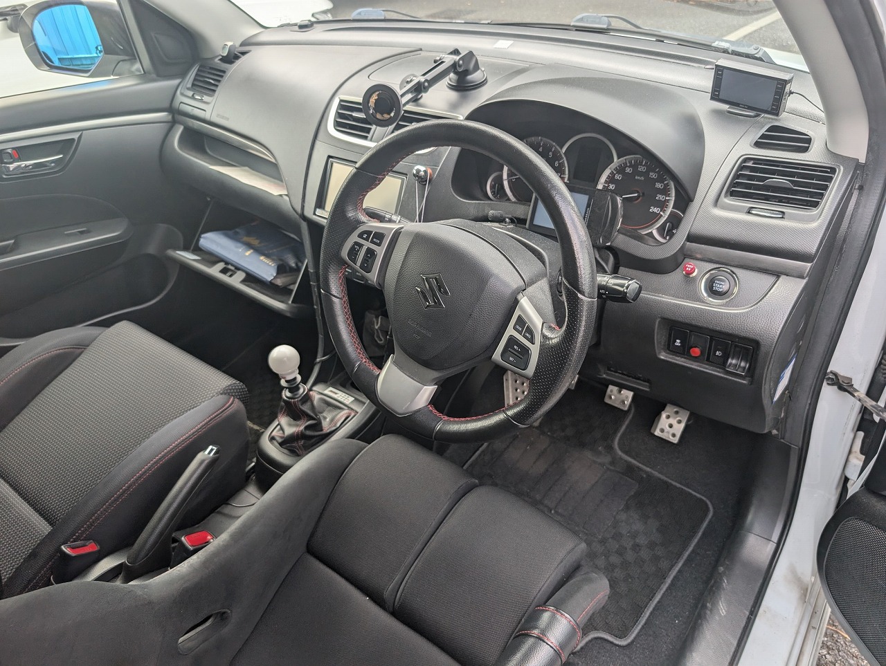 H25年式 スイフトスポーツ(ZC32S) 6速マニュアル 走行9.5万㎞H25年式、走行9.5万㎞のスイフトスポーツ(ZC32S)の改造車です。エンジン関係はTMスクエアのエアクリーナーボックス&エキマニ、ロッソモデロのマフラーを組み、TMスクエアのECUで制御されていて、モンスタースポーツのオイルクーラーも装着されています。足回りはアールズのローダウンスプリングが組んであり、駆動系もモンスタースポーツのクラッチやTMスクエアのLSDが装着されています。外装は傷など少ないTMスクエアのフロントバンパー、エンケイのホイールを組んでドレスアップしてあり、内装にはブリッドのバケットシートが組んであります。街乗りからスポーツ走行までオールマイティに楽しめそうな改造車のため、高価買取できました。