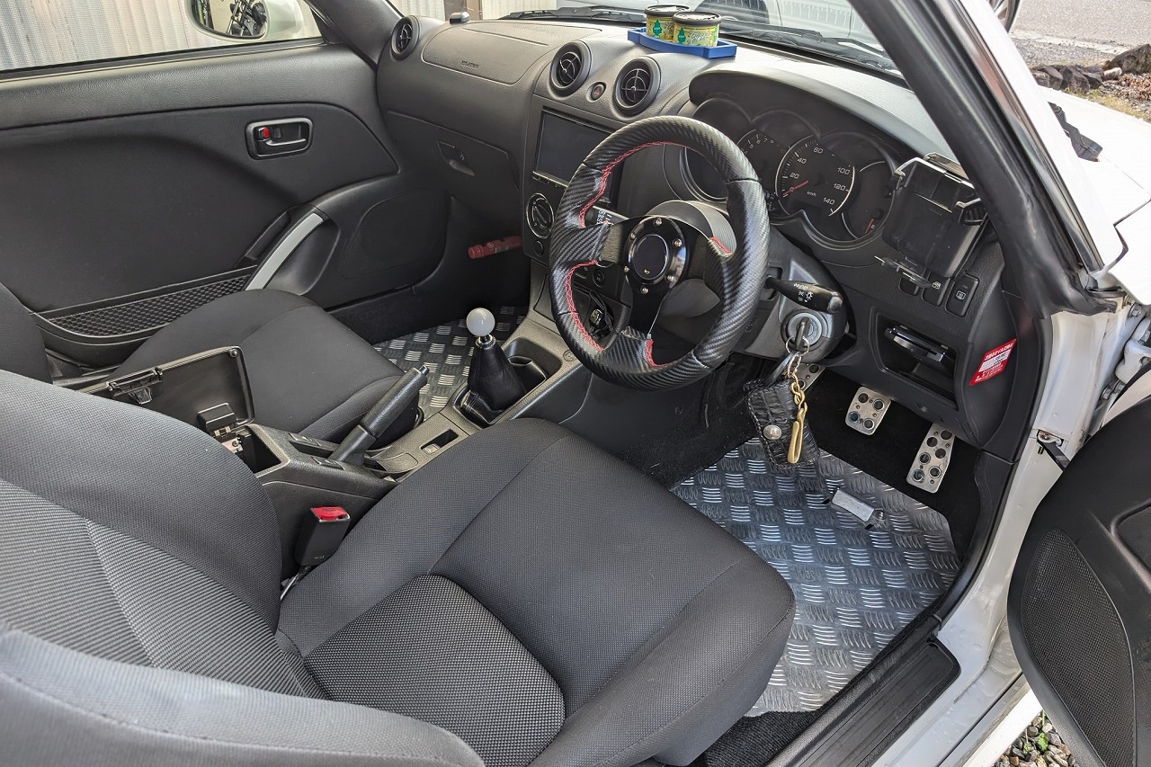 内張、ダッシュボード、シートなどの状態が良くルーフもしっかり動きます。社外のステアリングに交換されています。