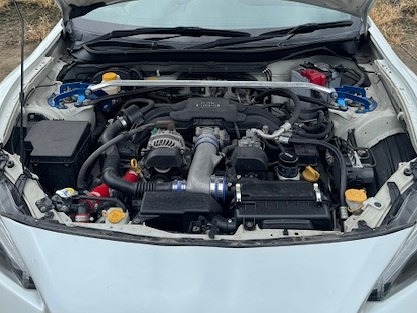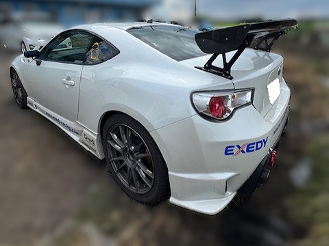 H25年式 86(ZN6) GT 6速マニュアル 走行7.9万㎞H25年式、走行7.9万㎞の86(ZN6)のマニュアル車をベースにした改造車です。エンジン県警はエアクリーナー、サクションパイプ、マフラーを社外品に交換してあります。足回りはクスコの車高調が組んであり、ブレーキもGRBのブレンボキャリパーに交換されています。外装はイングスのエアロ、ボルテックスのGTウイング、グラムライツのホイールなどでドレスアップしてあります。査定時はシートが外されていて、ステアリングがノーマルでしたが、ノーマルシートと社外ステアリングが装着された状態で買取しました。