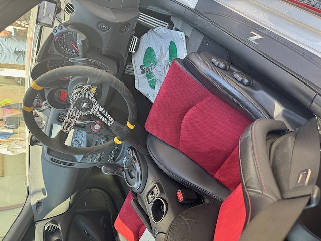 内装はステアリングがMOMO製に交換されています。改造車買取専門CPSでは高年式スポーツカーの改造車も多く査定、買取しています。イベント仕様、サーキット仕様、街乗り仕様など様々な仕様を高価買取‼北海道から沖縄県まで全国無料で出張査定を行っておりますので、チューニングカー、ドレスアップカーの改造車の売却をご検討されている方がいましたら、お気軽にお問合せ下さい♪