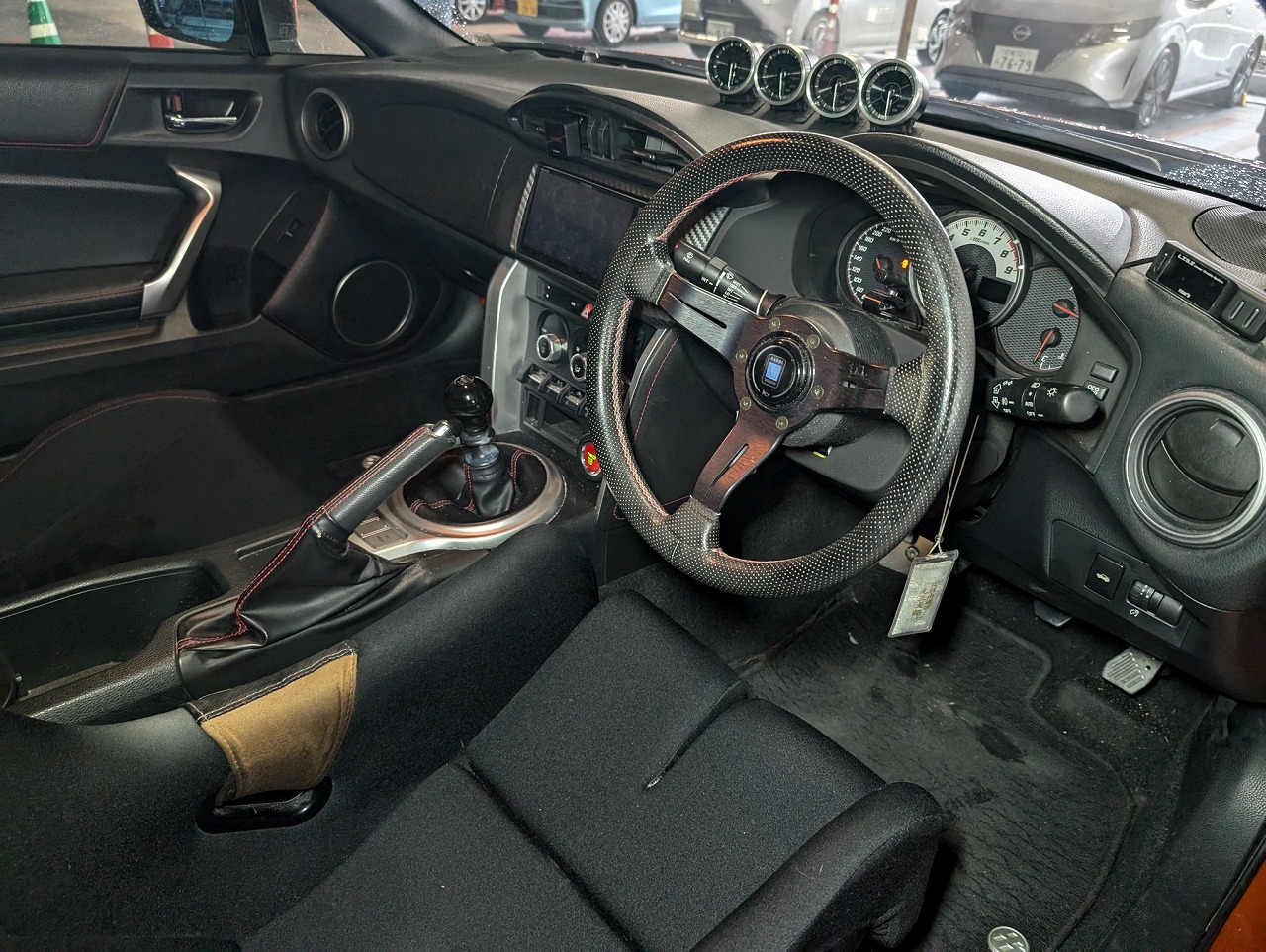 H27年式 86(ZN6) GT 6速マニュアル 走行8.3万㎞H27年式、走行8.3万㎞の1オーナー車の86(ZN6)の改造車です。エンジンはHKSのスーパーチャージャーキットを組んであり、HKS車高調で足回りを強化してあります。外装はキズなど少なくDirect86のエアロキット、アドバンGTビヨンドホイールを装着してあります。内装もブリッドのバケットシート、ナルディのステアリング、デフィの追加メーターが装着されています。バランスよくチューニング&ドレスアップした改造車のため高価買取できました。