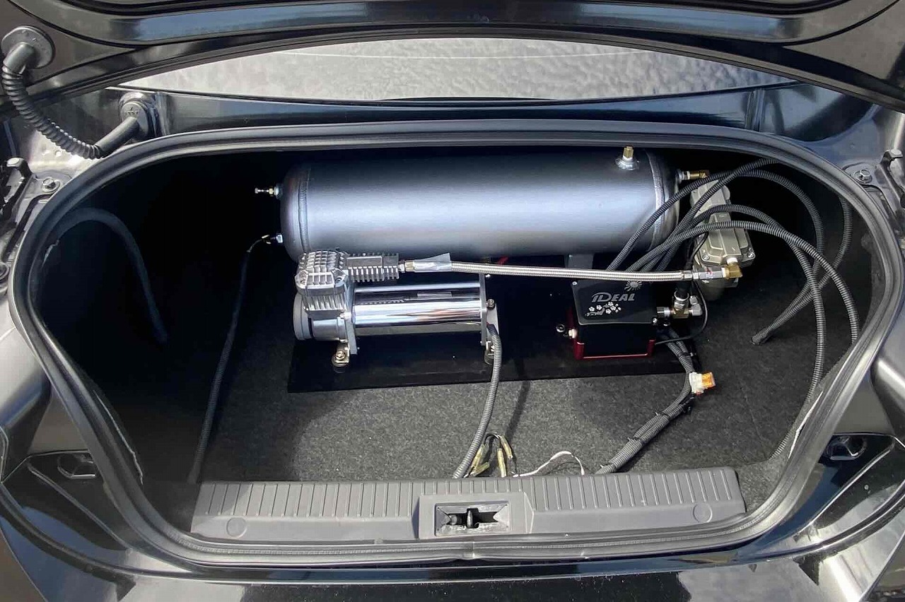 エアサスのコンプレッサー、タンク類はトランク内にインストールされています。