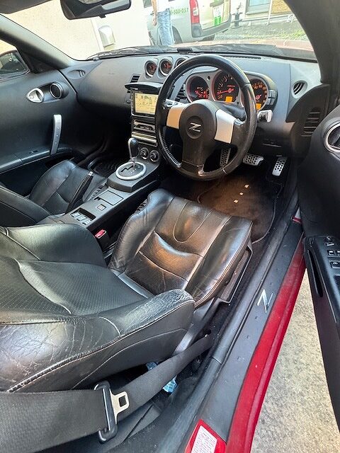 H16年式 フェアレディZ(Z33) バージョンT オートマ 走行12.9万㎞H16年式、フェアレディZ(Z33)のオートマ車になります。走行距離は12.9万㎞でエンジンにオイルにじみ、レザーシート、ステアリングに擦れなどありました。アフターパーツはフジツボのマフラーが装着されていました。ほぼノーマルのオートマ車ですが、当社に売却を決めて頂けました。