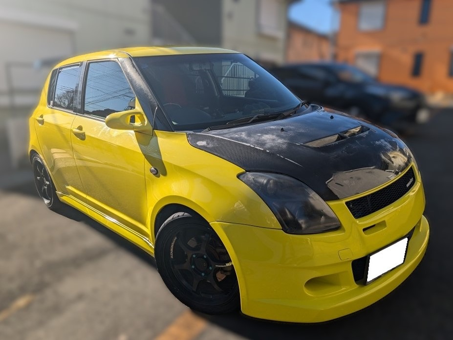H19年式 スイフト(ZC31S) スポーツ 5速マニュアル 走行19.9万㎞H19年式、1オーナー車のスイフト(ZC31S)の改造車で、モンスタースポーツのパーツをメインに使いチューニングしてあります。エンジンはモンスタースポーツのコンプリートエンジンで足回り、駆動系、エアロパーツなどもモンスタースポーツ製でチューニングしてあります。外装はボンネットやピラーに色あせがありますが、年式や走行距離のわりに程度が良いです。走行距離は20万㎞近いですが、大事に乗られていたのがわかる改造車のため精一杯の金額ごご提示し買取しました。