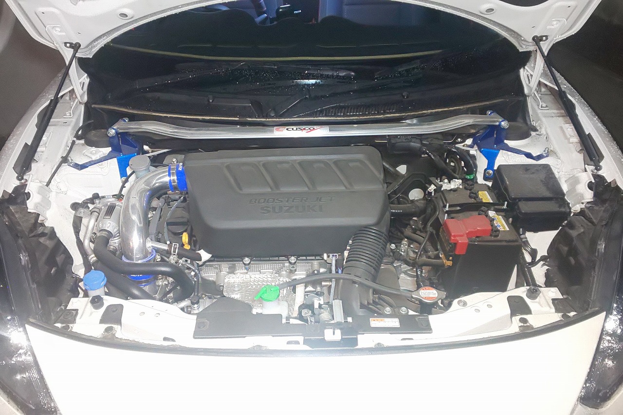 内装はノーマルですがリヤシート足元にクスコのフロアバーが装着されています。改造車買取専門CPSではスイフトスポーツの改造車を多く査定、買取しています。イベント仕様、サーキット仕様、街乗り仕様など様々な仕様を高価買取‼北海道から沖縄県まで全国無料で出張査定を行っておりますので、チューニングカー、ドレスアップカーの改造車の売却をご検討されている方がいましたら、お気軽にお問合せ下さい♪
